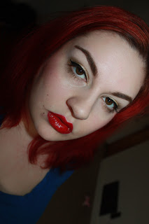 I swear this gloss just will not photograph the right color. In real life it is much more raspberry-purpley but it just goes soooo red in photos :(