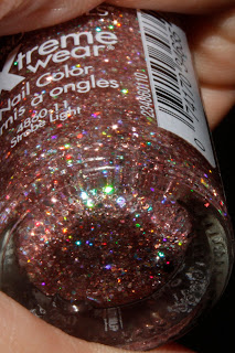 Oh, if I could only squee the way I squee'ed when I found this lone bottle of Strobe Light in Rite Aid. I haven't seen this one before but the combination of pink and holo glitter is enough to send me into convulsions of excitement.Here is one layer over Sinful colors Great Wall.